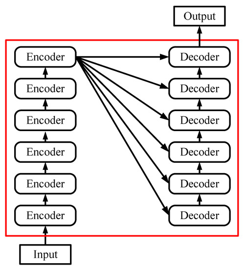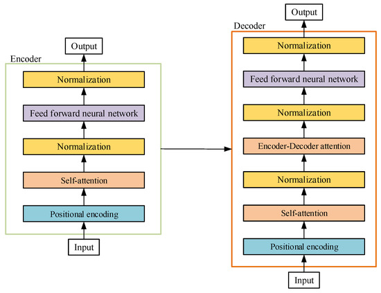 The Transformer structure used in this paper is shown in the Figure 1, with an encoder–decoder structure. The encoder consists of 6 encoding blocks, and similarly the decoder is composed of 6 decoding blocks. As with all generative models, the output of the encoder will be used as the input to the decoder.