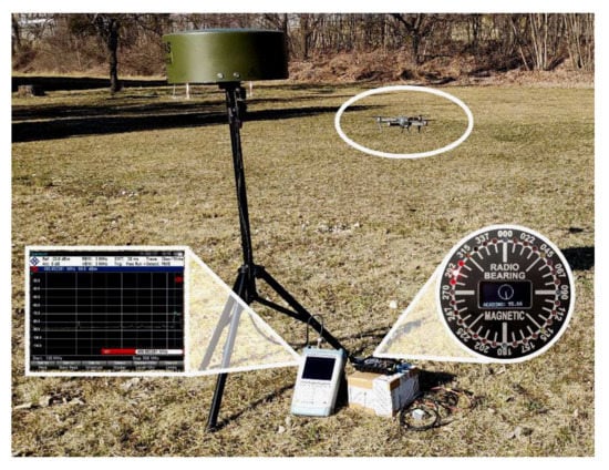 The growing demand from manufacturers and operators of UAVs for SAR (Search and Rescue) or military applications has led the authors to consider an alternative way to locate UAVs, not just in-flight tracking [18]. For this reason, from Table 1 above, we can categorise our IDVOR targeting system into the group of RF analysers and RDF (Radio Direction Finders). For the system’s greatest possible mobility and simplicity, we did not use triangulation (i.e., at least three receivers) but one mobile system using the mentioned principle of the inverse DVOR function. Thanks to that, we can target the direction from which the transmitted “emergency” high-frequency signal from the fallen UAV propagates. We did not obtain a specific position (exact coordinates (x, y, z)) as that would require three IDVOR receivers. Instead, in our case, we determined the direction from which the signal is carrying/transmitting.