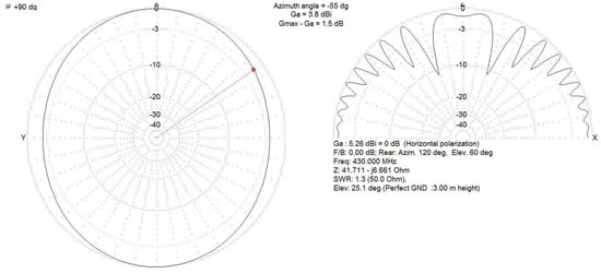Testing the IDVOR device in real conditions was preceded by a simulation verification of the radiation characteristics of the used antenna monopole (Figure 9). The simulation has proven that such a design will suit our application.