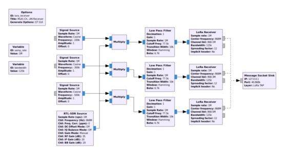 - GNU Radio LoRa Receiver. Available online: https://github.com/rpp0/gr-lora (accessed on 10 November 2021).