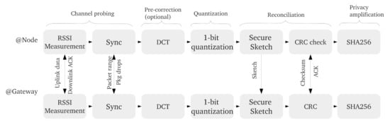 - da Cruz, P.I.; Suyama, R.; Loiola, M.B. Increasing key randomness in physical layer key generation based on RSSI in LoRaWAN devices. Phys. Commun. 2021, 49, 101480. [Google Scholar] [CrossRef]