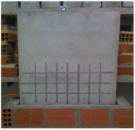 Table 5 depicts the timeline for the measurements for each one of the four tests performed. To monitor the humidification and the drying phases of the wall, several areas were marked on its surface, limited by aluminum tape to be detected by the IR camera, as shown in Figure 3. This procedure was necessary, because GM is a destructive method, requiring a clear definition of the location where the sample was collected in each time step. In each test, the first measurement (IRT, SMM and GM) was performed on the left side of the wall, while subsequent measurements were performed on the following intact columns.
