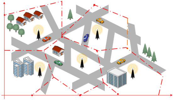- Patil, P.; Gokhale, A. Voronoi-based placement of road-side units to improve dynamic resource management in vehicular ad hoc networks. In Proceedings of the 2013 International Conference on Collaboration Technologies and Systems (CTS), San Diego, CA, USA, 20–24 May 2013; pp. 389–396. [Google Scholar]