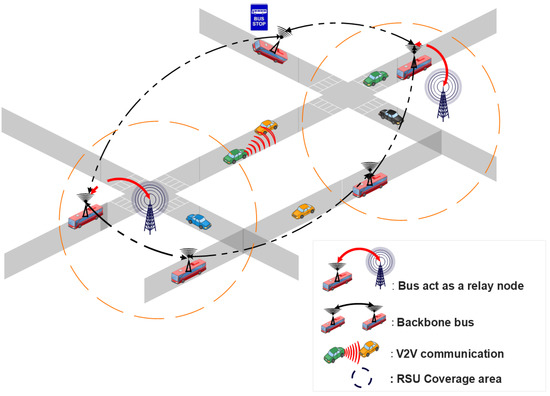 - Jiang, X.; Du, D.H. Bus-vanet: A bus vehicular network integrated with traffic infrastructure. IEEE Intell. Transp. Syst. Mag. 2015, 7, 47–57. [Google Scholar] [CrossRef]