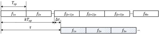 The existence of makes the sub-pulses modulated by misaligned with the original signal. In the overlap interval of the two signals, each sub-pulse of the delayed signal is divided into a front part marked by a dot and an end part marked by a stripe, with the length of and , respectively. The front part of the delayed m-th sub-pulse corresponds to the frequency code of the original signal, and the end part of this sub-pulse corresponds to the code. Therefore, the integral operation of AF can be divided into two parts according to the division of the sub-pulse.