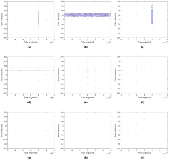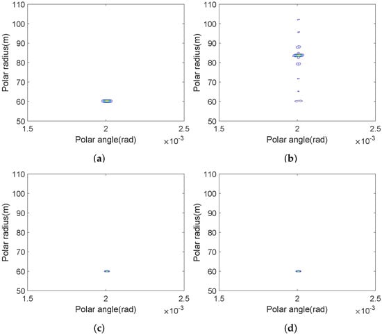 A keystone resampling is applied here to calibrate the radius migration by slow-time interpolation as shown in (17). It eliminates the interSection of and , realizing the radius–angle decoupling successfully.