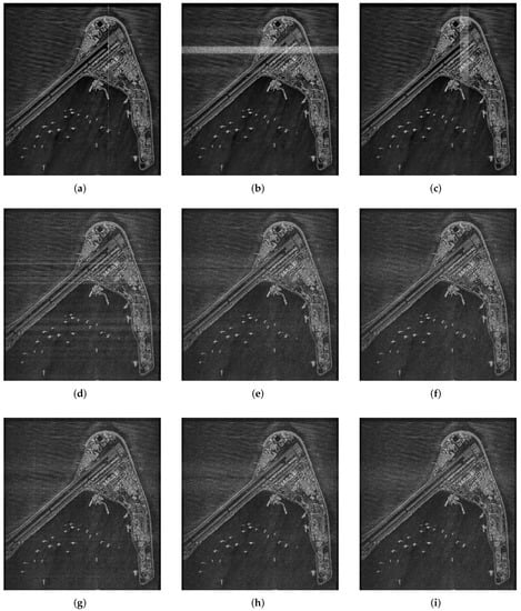 Simulation images of a real scene: (a) RSF-LS-DFC SAR with FFSI; (b) RSF-LS-DFC SAR with RFSI; (c) RSF-LS-DFC SAR with SFSI; (d) RSF-IC-DFC SAR with FFSI; (e) RSF-IC-DFC SAR with RFSI; (f) RSF-IC-DFC SAR with SFSI; (g) RSF-DC-DFC SAR with FFSI; (h) RSF-DC-DFC SAR with RFSI; (i) RSF-DC-DFC SAR with SFSI.