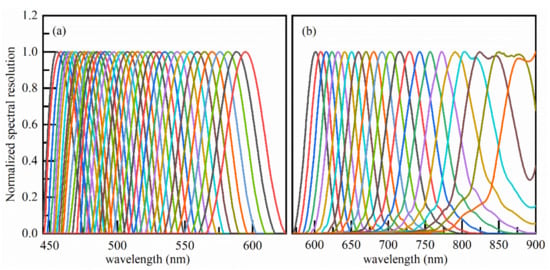 Thanks to the advent of high-resolution sensors, various snapshot imaging spectrometers [,,,,,] have been established. For instance, Hagen and Kudenov analyzed a variety of snapshot spectroscopic imaging techniques in 2013; Maione et al., presented a spatially heterodyned snapshot imaging spectrometer in 2016; Xie et al., introduced a snapshot imaging spectrometer based on a pixel-level filter array (PFA) in 2021, among others.