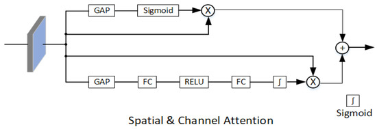 The attention module is composed of spatial attention and channel attention in parallel. Spatial attention only consists of global average pooling (GAP) and activation function sigmoid. Channel attention consists of GAP, fully connection (FC), RELU, and sigmoid.
