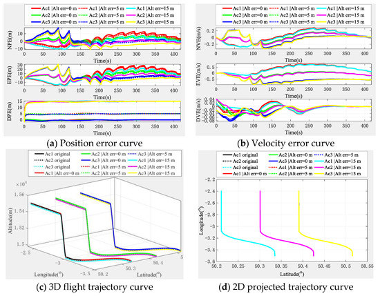 - Aci|Alt = H m indicates that aircraft i is H m in the altimeter algorithm performance below, where i = 1,2,3, represents the i-th aircraft, Alt represents the altimeter, and H = 0 m, 5 m, and 15 m.