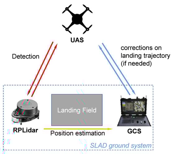 This paper exploits the ability of 2D LiDAR technology to provide three-dimensional elevation maps of a landing area and high-precision distance measurements, in order to design a safe landing identification strategy for UAS missions. A mechanically rotating, wide field-of-view 2D LiDAR is used, sensing the surroundings of the surveillance volume with high temporal resolution to detect obstacles, track objects, and support path planning. Another important issue, goal of this paper, is related to automatic landing zone surveying through obstacle detection around the landing area, in order to perform safe landing area determination (SLAD). Obstacle detection and avoidance systems (DAA) can be installed onboard the unmanned aircraft [31,32], and research on rotating LiDARs used onboard UAVs combined with stereo cameras for onboard landing area detection are available in literature [33,34]. In this paper, we propose a ground-controlled, rather than onboard-controlled, approach. The safe landing functionality, in terms of assessing the UAV correct position within a clear area, is performed by a LiDAR-equipped ground station, interfaced to a communication link with the UAV, therefore capable of identifying and transmitting safe landing paths to the approaching aircraft by identifying clearance areas, i.e., areas with no obstacles which could impair descent and/or landing. By mounting the LiDAR vertically on a servo motor, we combine the (now vertical) fast laser scanned information with the slow, controlled horizontal rotation of the motor, obtaining a tridimensional map of the surroundings of the landing zone. With respect to onboard SLAD systems, a ground-based solution offers many advantages, such as payload reduction, improved aircraft endurance due to reduced power consumption, communication of useful auxiliary information to the aircraft, and management of more than one aircraft in the surveillance volume. The system can identify obstacle-free areas, detect the UAS position, and indicate safe trajectories for landing maneuvers (a conceptual architecture of the system was presented by the authors in [35]).