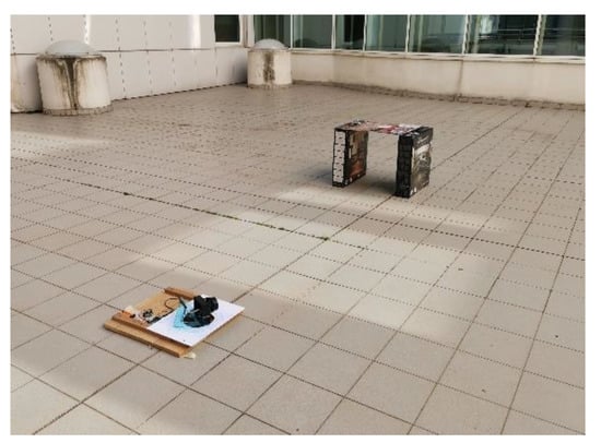 In order to identify landing vehicles and map their descent trajectory, we set up a simple outdoor test by mapping a surveillance volume with the system, with the UAV approaching the landing field and executing a vertical landing. A preliminary calibration of the LiDAR was performed to verify the correctness of the alignment and the absence of geometric distortions. A sample object was used to test the calibration procedure (Figure 21). The calibration procedure described in the previous section gave the values shown in Table 5 or the inclination angles.