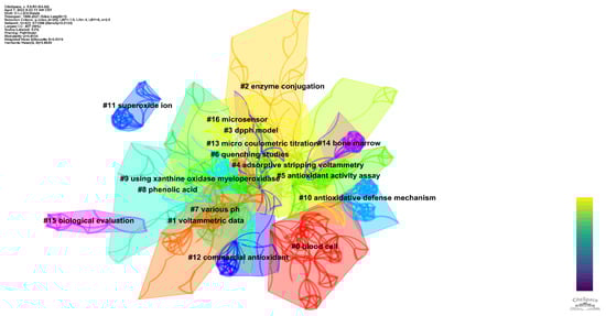 #12 (commercial antioxidants) The work of this cluster is also mainly to analyze the properties of some antioxidants. For example, Susana et al. [] investigated the degradation mechanism of some commercial antioxidants. Rubin et al. [] investigated the redox mechanism of the coenzyme Q. Poon et al. [] investigated the relationship between phenoxazine’s free-radical-capturing activities and phenothiazine and temperature.