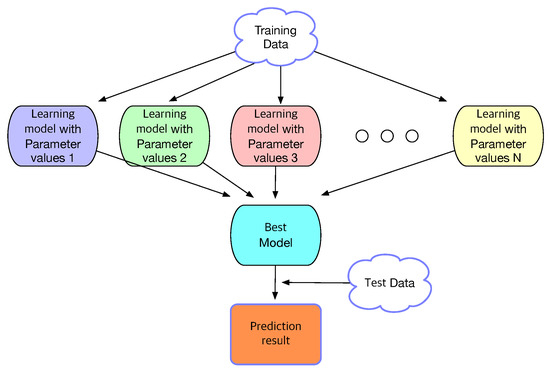 For each machine-learning algorithm mentioned above, hyperparameter optimization is performed by using a grid search as shown in Figure 2 to determine the optimal parameters through which the best learning model is derived.