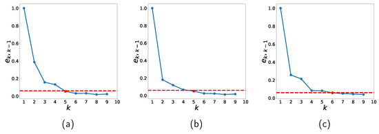 where h is a threshold. is introduced to avoid dependency on the dataset. Figure 8 shows in (5) for several k values. is used in this study and the optimal k for the datasets are listed in Table 6.