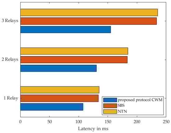 Figure 18. Routing latency with respect to the number of relay nodes comparing the 3 strategies.