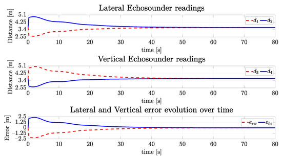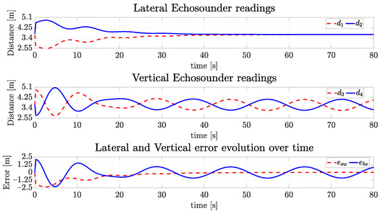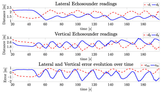 Readings of echosounders of VITA1 and the vertical and horizontal errors over time for the real vehicle.