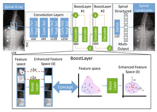 - Wu, H.; Bailey, C.; Rasoulinejad, P.; Li, S. Automatic Landmark Estimation for Adolescent Idiopathic Scoliosis Assessment Using BoostNet. In Proceedings of the International Conference on Medical Image Computing and Computer-Assisted Intervention, Quebec City, QC, Canada, 10–14 September 2017. [Google Scholar]