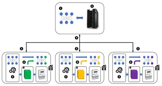 The overview of the proposed approach is shown in Figure 2. Without loss of generality, there are 3 households which need to be predicted, the number can be extended without too much work. Each household has a device for computing models and communicating with the master server. The approach mainly consists of 6 procedures as follows: