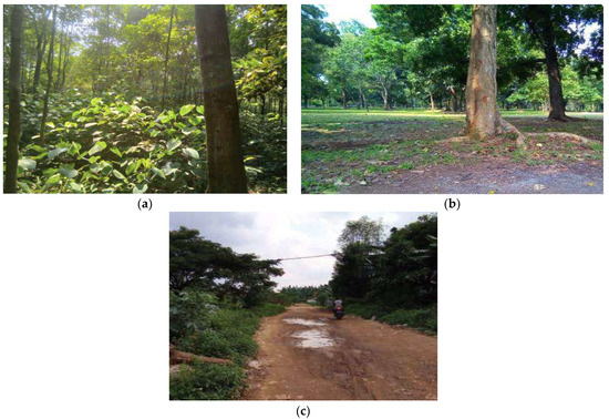 In this research’s conducted measurement, 3 different sites were chosen because of their distinct or unique properties (please see Figure 2). The first site is a jungle where overgrown mass of vegetation spreads over a large area of land. This jungle has many plants on the ground between trees and larger plants. The very dense vegetation on the ground sometimes makes it difficult or impossible for humans to go around or travel through a jungle. The second site is a forest with a dense growth of trees covering a large area of land. It has many tall trees. However, paths between trees can be traveled through by humans. Finally, the last site is an open dirt road. However, on this site, the vegetation grows on the left side and on the right side of the road. These 3 measurement sites were chosen to study the effect of their distinct or unique properties and their effect on electromagnetic wave propagation. It will provide us with more information about electromagnetic wave behavior that propagates near the ground. The measurements were carried out in 3 different locations with 3 distinct characteristics. In all environments, the measurements were carried out with 54 different LoRa radio configurations. The forest environment, located in the eastern suburbs of Jakarta, has a GPS coordinate −6.366020, 106.901294. The jungle environment is also located in the eastern suburbs of Jakarta, and it has GPS coordinates −6.358641, 106.903730. The open dirt road environment is located in the western suburbs of Jakarta at GPS coordinates −6.214478, 106.747576.
