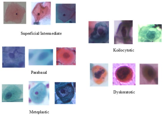 - Plissiti, M.E.; Dimitrakopoulos, P.; Sfikas, G.; Nikou, C.; Krikoni, O.; Charchanti, A. Sipakmed: A New Dataset for Feature and Image Based Classification of Normal and Pathological Cervical Cells in Pap Smear Images. In Proceedings of the 2018 25th IEEE International Conference on Image Processing (ICIP), Athens, Greece, 7–10 October 2018; pp. 3144–3148. [Google Scholar]