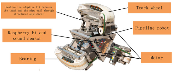 The pipeline robot [23] can enter the pipeline in a relatively narrow space and replace the workers to complete the pipeline inspection and maintenance work, which can greatly improve the efficiency of pipeline maintenance and reduce the cost of maintenance. The pipeline robot is accompanied by various sounds during the internal operation of the pipeline. The research goal of fault diagnosis is to be able to quickly detect some common problems of the pipeline robot. The operation of the pipeline robot in the pipeline is shown in Figure 2.