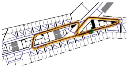 Simple point-to-point map matching was among the first computationally efficient and simple approaches. It can be viewed as a simple search problem where location points are matched to the respective floor plans. The disadvantage is its sensitivity to how the path network is digitized [10]. Therefore, the obtained trajectory can be matched with the help of geometry and topology information with trajectory matching methods. In [11], the trajectory of a given user is compared to the geometry of the floor plan. Another approach, where the sequence of the users states of motion (standing, walking, turning, etc.) are compared with a map, has been developed in [12]. The advantage of trajectory matching compared to point-to-point matching is its higher robustness and smaller errors. Its disadvantage, on the other hand, can be its high complexity and possible poor ability for real-time applications [13].