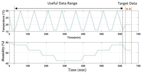 Temperature and humidity control of the incubator: Useful data range and target data range of 30th to 615th and 630th to 660th min, respectively.