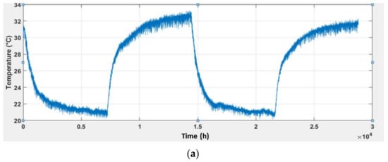 In addition, the characteristics and response of the MOX sensor are highly affected by the temperature of the metal oxide layer. The temperature range of the layer is said to lie between 200 °C and 500 °C [26,27,28] and is achieved using a built-in heater resistor. This temperature range is essential for stimulating the relevant chemical reaction and improving its selectivity and response rate [26]. Moreover, the effect of humidity on the sensor’s response could also be decreased as the temperature is kept well above 100 °C [26].