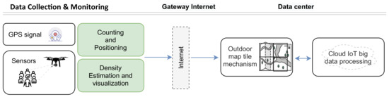 The remainder of the study is organized as follows: Section 2 explains the background and current works relevant to this field of study. Section 3 explains the architecture of the proposed structure including crowd data collection and monitoring, outdoor map tile mechanism, and cloud IoT big data processing and analytics. Section 4 describes the experiments and presents the results of the evaluation of the proposed algorithms. Section 5 concludes the study with suggestions for future research directions.