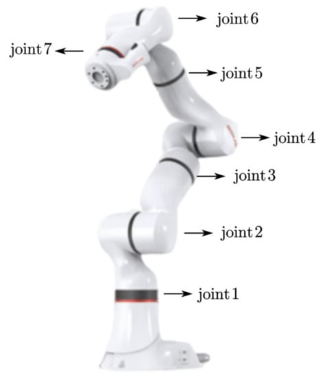 In Figure 3, the xMate3 Pro robot (Manufacturer: ROKAE (Beijing) Technology Co., Ltd., Beijing, China) is designed with seven degrees of freedom redundant motion, and the robot can achieve the same end position in different configurations. It has a maximum load of 3 kg, a repeatable positioning accuracy of ±0.03 mm, a control frequency of 1000 Hz, support for position control, impedance control and direct torque control and a kinematic and kinetic calculation interface. Motion commands are transmitted via Ethernet to the robot controller.