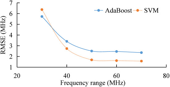 RMSE of the extracted BFS under different frequency range by AdaBoost and SVM.