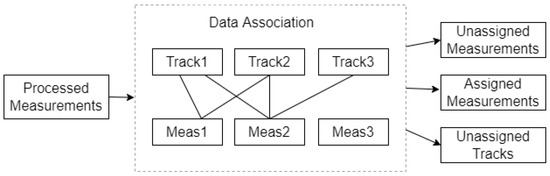 When the data association module is updated with new set of detections from the mono camera, the tracker attempts to assign these detections to the existing tracks it maintains. The assignment has three possible outcomes: detection is left unassigned, detection is assigned to a track, and a track is left unassigned as depicted in Figure 8. If the assignment gating or threshold is small, there is a chance that much detection is left unassigned, leading to the creation of many tracks. If it is too large, then an incorrect detection association may happen.