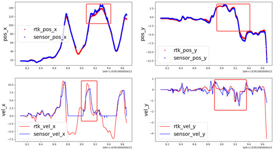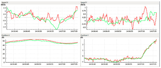 The compared state includes the position and velocity in both lateral and longitudinal direction as expressed by the following Equations (19)–(22):