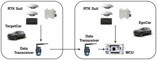 The validation platform is composed of the ego-car and target car that are both quipped with the RTK suit and data transceiver suit as shown in Figure 14.