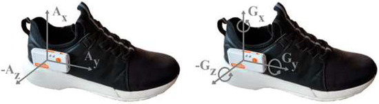 The person’s foot movement data collected was their acceleration and angular velocity. For this, an IMU (Shimmer sensing, Dublin, Ireland) was attached to each participant’s lateral part of the right shoe (Figure 2). The IMU was previously calibrated, and a sensitivity of ±16 g was used for acceleration and ±2000°/s for angular velocity. The sampling frequency used was 204.8 Hz.