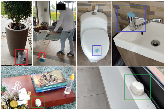 - Mobile beacons: Beacons that are also attached to an object of daily use, whose movement indicates an activity. Still, unlike active beacons, the position of mobile beacons can change drastically since they are attached to elements, such as the broom and a jug.