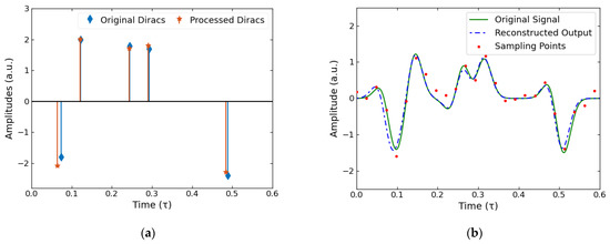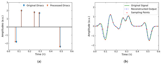 - Dragotti, P.L.; Vetterli, M.; Blu, T. Sampling Moments and Reconstructing Signals of Finite Rate of Innovation: Shannon Meets Strang Fix. IEEE Trans. Signal Process. 2007, 55, 1741–1757. [Google Scholar] [CrossRef] [Green Version]
