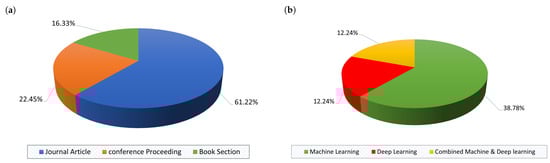 This stage explains the exclusion criteria used in this study. First, we only consider the articles published between January 2016 to mid-2021. Second, we limit the articles in our study to those published in the English language by using each database’s language selection option. However, since Google Scholar, Science Direct, and IEEE Xplore® digital library do not provide a language selection option, we collected all relevant studies from those sources. Next, we selected English-only studies by screening the title and abstract using Mendeley Software [42]. We discovered that several studies were in multiple databases during the screening process. Therefore, we started removing the duplicated studies using Mendeley; additionally, we performed another filter to check the type of documents. This procedure limits the document types to journal articles, conference proceedings, and book section articles and excludes others, such as dissertations, reports, presentations, and magazines.