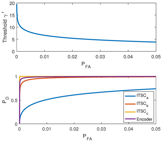 For the case study, the statistical detector should be designed in a way that it is able to detect even the smallest ITSC fault (<1%). Therefore, the noncentrality parameter is calculated based on the implementation of (31) on the resultant residual at t = 4.471s–7.238 s when the motor is experiencing the lowest ITSC fault level in phase a winding and yields . Using this value, the threshold and receiver operating characteristics (ROC) of the detector is obtained based on (32)–(34) and shown in Figure 13. The values here are for the lowest ITSC fault level in phase a, which means other ITSC faults in phases b and c have lower values. Using , the threshold is obtained as , and this results in for ITSC in phase a. Furthermore, the probability of detection for ITSC faults in phases b and c and the encoder fault are calculated , , and , respectively.