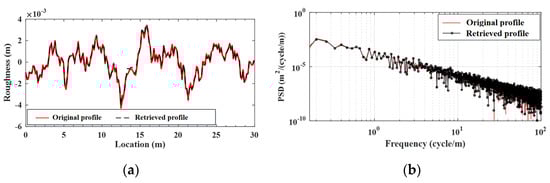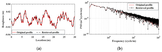 In practical measurement, the bridge surface roughness is unknown and can be estimated using the procedure presented herein. However, in this numerical simulation, for the purpose of verification, the surface roughness will be assumed to be known, and the roughness profile estimated by the proposed procedure will be compared with the known one to assess the level of accuracy.