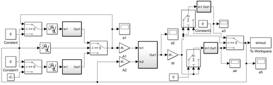 The simulation model (Simulink model) of the isothermal vessel based on the mathematical model is shown in Figure 9.