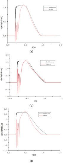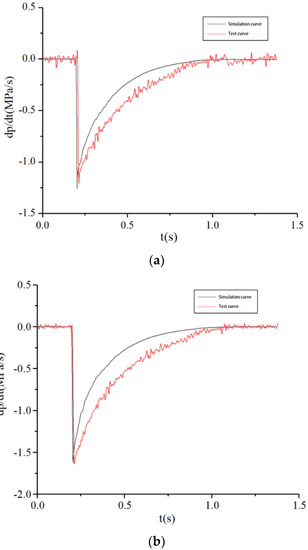 According to the test results, the PCR of the brake chamber is less than 2.6 MPa/s during the braking process and the unbraking process, which meets the PCR threshold requirement of commercial vehicle brake chambers and achieves the functional requirements of the test system. The PCR test curves of the commercial vehicle brake chamber in the process of pressurization and depressurization are consistent with the simulation curves, which verified the correctness of the PCR test system for commercial vehicle brake chambers designed in this paper.