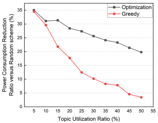 Power consumption comparison according to the topic utilization ratio.