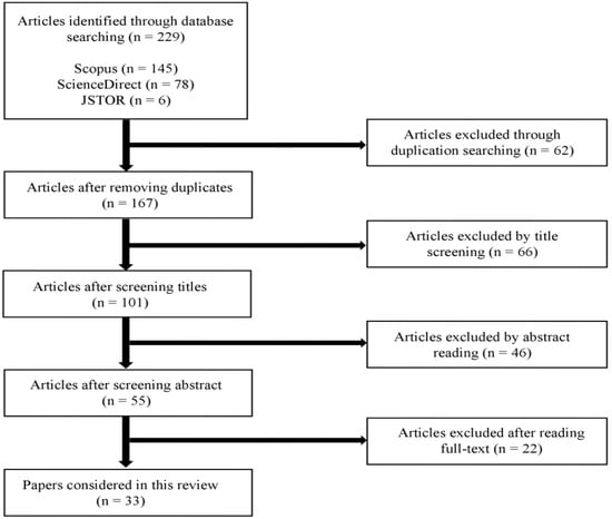 The definition of Ubiquitous Air Quality Sensing (UIAQS) system has merged from several laboratories for industrial practice in recent years, which refers to the sensing systems that can provide real-time and high spatial and temporal resolution for monitoring indoor air concentration levels [14]. This study follows this definition, which provides the key criteria for the selection of academic articles. The selected academic articles were examined based on a four-step review process, which is illustrated in Figure 2.