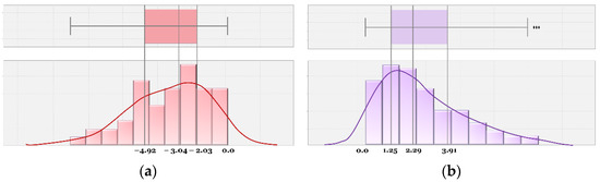 Next, we analyzed the extracted PSM distributions. Note that PSM counts how many seconds it takes for a car to pass through the same point after a pedestrian passes it, thus quantifying the potential risk of a vehicle–pedestrian collision. In our experiment, we filtered out the negative values and only looked at cars passing behind the pedestrians (negative PSM values mean that the car passed before the pedestrian). Then, we differentiated between the signalized crosswalks (spots A, B, C, and F) vs. unsignalized crosswalks (spots D, E, G, H, and I).