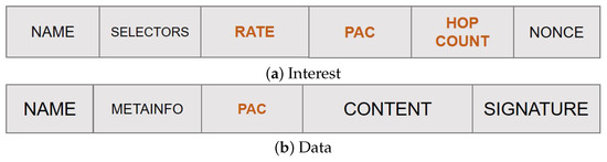 Overhauled NDN packets (fields with text in orange are those added by the PaC-based caching).