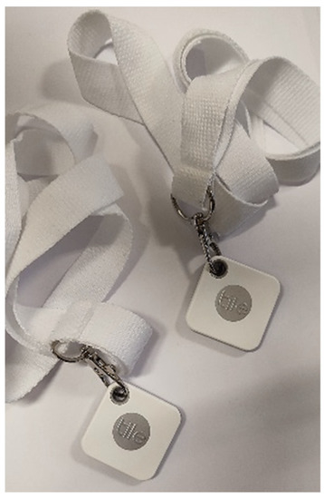 The Tile Mate (Figure 2) tags are easily worn around the neck by home residents throughout the day thanks to their compact size.