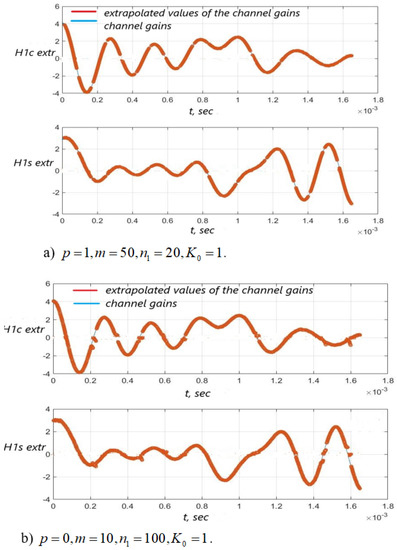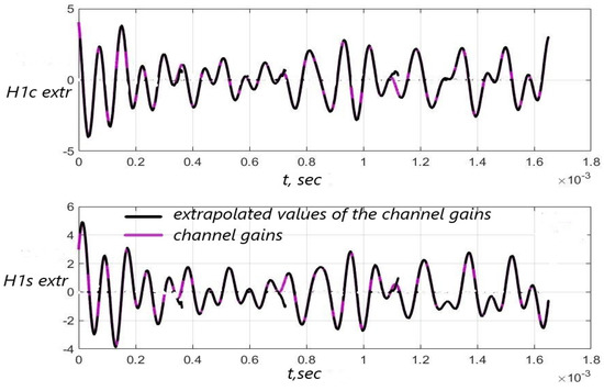 The channel gains can be extrapolated over the interval of length , using estimations (6), (8), (9) in the form