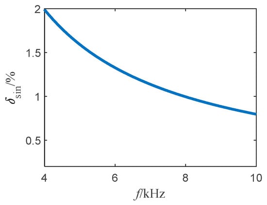 According to Equations (6) and (10), we can find . Figure 3 depicts the variation curve of with the frequency of the sinusoidal current.